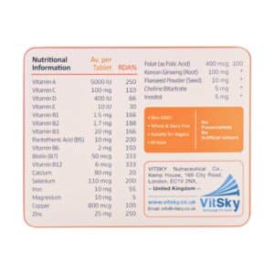 - ترکیبات جامع: این قرص حاوی ویتامینها، مواد معدنی و عصارههای گیاهی میباشد.